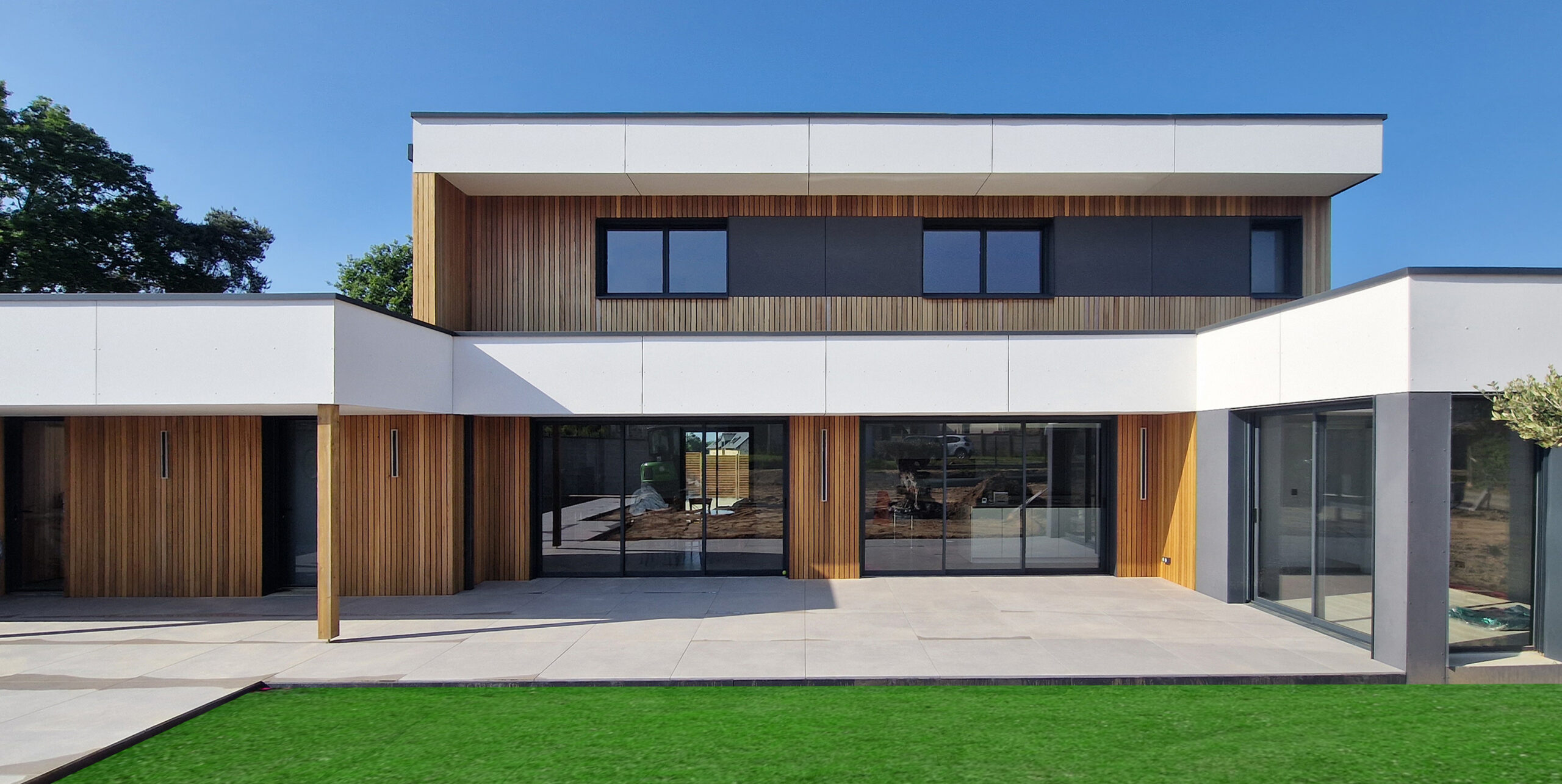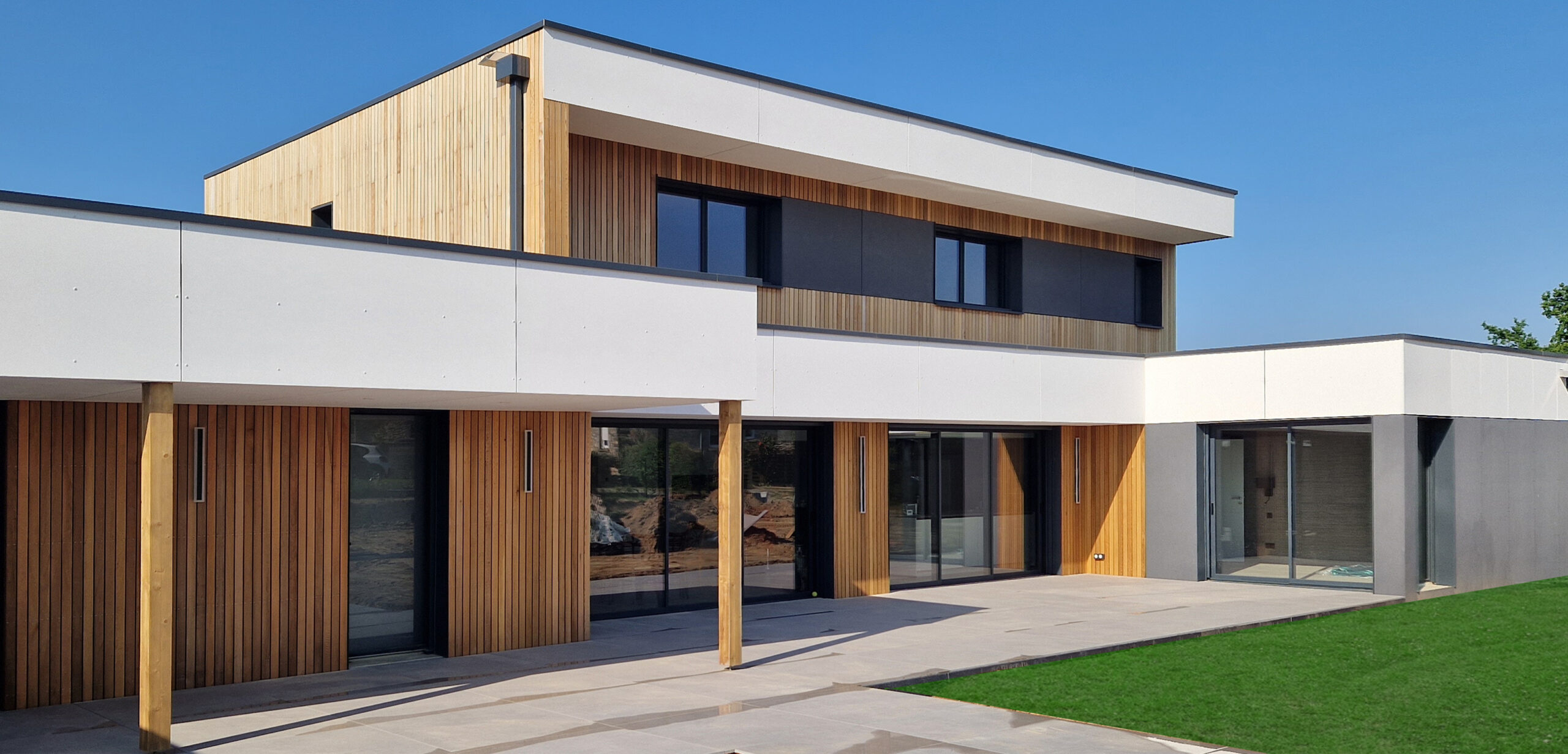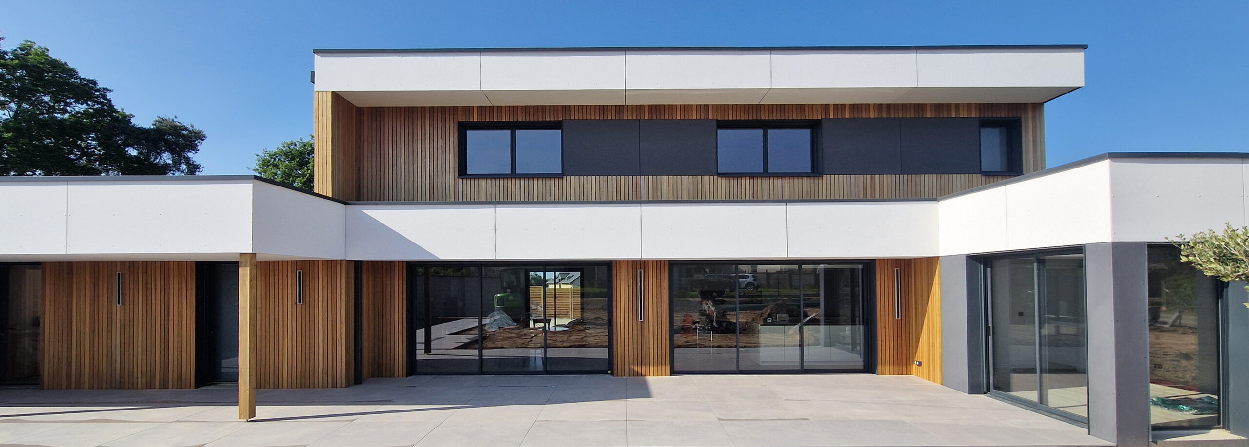 Bardage à claire-voie Red Cedar et panneaux Eternit